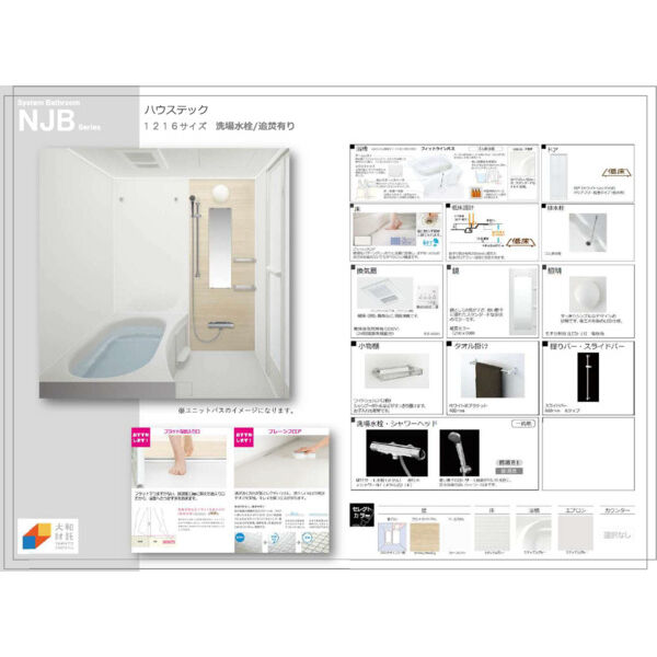 ○ 風呂(ユニットバス) ○ トイレ(水洗) ○ 洗面台(独立) ○ 浴室乾燥機 ○ 暖房便座 ○ シャワートイレ ○ 追い焚き ○ 洗髪洗面化粧台 ○ バス・トイレ別 ○ 洗濯機置場(室内)